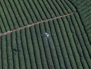 (260310) -- WUYI, 10 marzo, 2026 (Xinhua) -- Vista aérea tomada con un dron el 10 de marzo de 2026 de un dron agrícola fertilizando un jardín de té, en el distrito de Wuyi, en la ciudad de Jinhua, en la provincia de Zhejiang, en el este de China. Recientemente, las 128.200 mu (alrededor de 8.546,7 hectáreas) de jardines de té en Wuyi han entrado en plena temporada de cosecha. (Xinhua/Xu Yu) (ah) (ce)