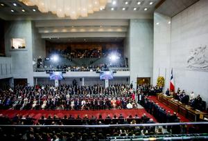 (260311) -- VALPARAISO, 11 marzo, 2026 (Xinhua) -- Imagen cedida por AGENCIAUNO del 11 de marzo de 2026 de la ceremonia de toma de posesión del presidente chileno, José Antonio Kast, en el Salón de Honor del Congreso Nacional, en Valparaíso, Chile. José Antonio Kast Rist asumió el miércoles de manera oficial la Presidencia de Chile para el período 2026-2030, de manos del saliente mandatario Gabriel Boric (2022-2026), en una ceremonia realizada en el Salón de Honor del Congreso Nacional, en la histórica ciudad porteña de Valparaíso. (Xinhua/AGENCIAUNO) (ah) (ra) (ce)