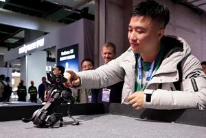 (260312) -- SHANGHAI, 12 marzo, 2026 (Xinhua) -- Un visitante interactúa con un perro robótico durante la Exposición Mundial de Electrodomésticos y Electrónica 2026 (AWE2026, por sus siglas en inglés), en Shanghai, en el este de China, el 12 de marzo de 2026. La AWE2026 comenzó en Shanghai el jueves. Más de 1.200 empresas de todo el mundo se reunieron en la exposición para presentar sus últimas innovaciones. (Xinhua/Fang Zhe) (da) (ra) (vf)