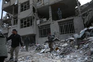 (260312) -- TEHERAN, 12 marzo, 2026 (Xinhua) -- Personas buscan artículos de primera necesidad de edificios dañados, en Teherán, Irán, el 12 de marzo de 2026. (Xinhua/Shadati) (ra)