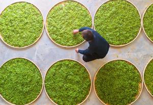 (260313) -- BEIJING, 13 marzo, 2026 (Xinhua) -- Vista aérea tomada con un dron el 13 de marzo de 2026 de un agricultor secando hojas de té en un jardín de té, en el distrito de Hengnan de la ciudad de Hengyang, en la provincia de Hunan, en el centro de China. (Xinhua/Cao Zhengping) (rtg) (ra) (vf)