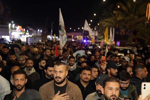 (260313) -- BAGDAD, 13 marzo, 2026 (Xinhua) -- Imagen del 12 de marzo de 2026 de personas asistiendo a un funeral de miembros fallecidos de las Fuerzas de Movilización Popular (FMP), un grupo paramilitar iraquí, en Bagdad, Irak. Los ataques aéreos contra el cuartel general de la 19 Brigada en Akashat, cerca de la frontera con Siria, en la provincia iraquí de Anbar, causaron la muerte de al menos 32 miembros de las FMP y dejaron 65 heridos el jueves por la mañana, dijo a Xinhua una fuente de seguridad provincial bajo condición de anonimato. (Xinhua/Khalil Dawood) (jg) (da) (ce)