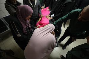(260315) -- NAPLUSA, 15 marzo, 2026 (Xinhua) -- Imagen del 14 de marzo de 2026 de palestinos lamentándose por la muerte de un hombre palestino asesinado por la violencia de los colonos israelíes, en un hospital en Naplusa, en el norte de Cisjordania. Un palestino murió y otros tres resultaron heridos el sábado tras un ataque perpetrado por colonos israelíes en el norte de Cisjordania, según la Sociedad de la Media Luna Roja Palestina y funcionarios locales. (Xinhua/Nidal Eshtayeh) (da) (ah) (ce)