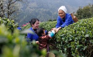 (260316) -- BEIJING, 16 marzo, 2026 (Xinhua) -- Imagen del 14 de marzo de 2026 de personas recolectando hojas de té en una granja de té, en la aldea de Guiling del distrito autónomo dong de Sanjiang, en la región autónoma zhuang de Guangxi, en el sur de China. En la mayor parte del sur de China, ha comenzado la temporada de cosecha de té. Los agricultores se encuentran ocupados recolectando y elaborando el té para satisfacer la demanda del mercado. (Xinhua/Su Yongzhu) (ah) (rtg) (vf)