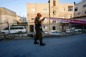 (260317) -- JERUSALEN, 17 marzo, 2026 (Xinhua) -- Imagen del 16 de marzo de 2026 del sitio afectado por fragmentos de un misil siendo acordonado, en Jerusalén Oriental. (Xinhua/Jamal Awad) (ah) (ra) (ce)
