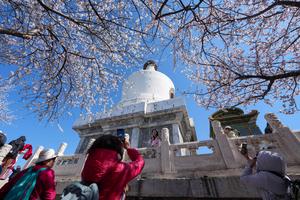 (260318) -- BEIJING, 18 marzo, 2026 (Xinhua) -- Turistas disfrutan de las flores de durazno en el parque Beihai, en Beijing, capital de China, el 18 de marzo de 2026. (Xinhua/Xie Han) (ah) (ra) (vf)