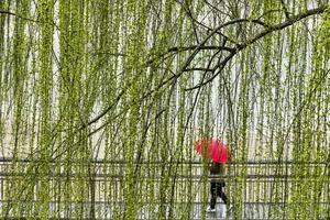 (260318) -- BEIJING, 18 marzo, 2026 (Xinhua) -- Imagen tomada con un dron el 17 de marzo de 2026 de una persona disfrutando de la vista primaveral en un parque, en la ciudad de Jiyuan, en la provincia de Henan, en el centro de China. (Xinhua/Miao Qiunao) (ah) (ra) (ce)