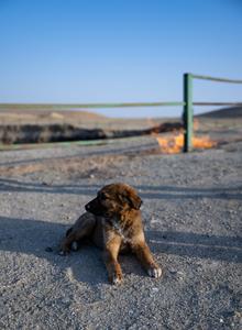 (260320) -- DARVAZA, 20 marzo, 2026 (Xinhua) -- Imagen del 19 de marzo de 2026 de un perro en el Cráter de Gas de Darvaza, también conocido como la "Puerta al Infierno", en Darvaza, Turkmenistán. (Xinhua/Li Renzi) (rtg) (ra) (ce)