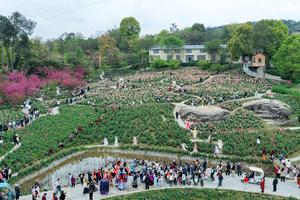 (260322) -- CHONGQING, 22 marzo, 2026 (Xinhua) -- Vista aérea tomada con un dron el 22 de marzo de 2026 de turistas visitando un área escénica, en la aldea Jiti del poblado de Ersheng, en Chongqing, en el suroeste de China. En los últimos años, la aldea Jiti, que anteriormente fue un centro de cultivo, se ha dedicado a promover la integración profunda de la agricultura, la cultura y el turismo. Al crear numerosas zonas temáticas con flores de diferentes épocas del año, ha impulsado eficazmente el desarrollo del turismo rural y aumentado los ingresos de los residentes locales. (Xinhua/Huang Wei) (rtg) (ah)