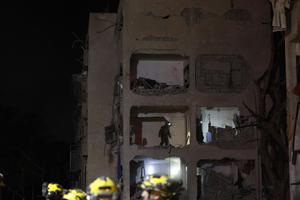 (260322) -- ARAD, 22 marzo, 2026 (Xinhua) -- Un rescatista trabaja en el sitio de impacto de un ataque con misil iraní, en Arad, en el sur de Israel, el 22 de marzo de 2026. El servicio nacional de emergencias de Israel, Magen David Adom (MDA) dijo en una declaración que al menos 64 personas resultaron heridas el sábado por la noche, en la ciudad de Arda, en el sur de Israel, por misiles disparados desde Irán. Según el MDA, siete personas sufrieron heridas graves, 15 heridas moderadas y el resto heridas leves. (Xinhua/Jamal Awad) (rtg) (ah)