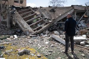 (260322) -- DIMONA, 22 marzo, 2026 (Xinhua) -- Un hombre revisa los escombros de un edificio dañado después de un ataque con misil, en Dimona, Israel, el 22 de marzo de 2026. Los ataques con misiles lanzados por Irán el 21 de marzo hirieron a 175 personas, entre ellas 10 de gravedad, en las ciudades de Arad y Dimona, en el sur de Israel. (Xinhua/Chen Junqing) (ah) (da)