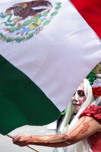 (260322) -- CIUDAD DE MEXICO, 22 marzo, 2026 (Xinhua) -- Una mujer caracterizada participa en el Desfile de "Catrinas Mundialistas", en la Ciudad de México, capital de México, el 22 de marzo de 2026. (Xinhua/Francisco Cañedo) (fc) (rtg) (da)