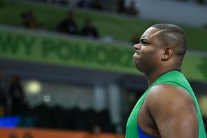 (260322) -- TORUN, 22 marzo, 2026 (Xinhua) -- Welington Morais, de Brasil, reacciona durante la final de lanzamiento de peso masculino en el Campeonato Mundial de Atletismo en Pista Cubierta 2026, en Torun, Polonia, el 22 de marzo de 2026. (Xinhua/Zhang Haofu) (rtg) (da)
