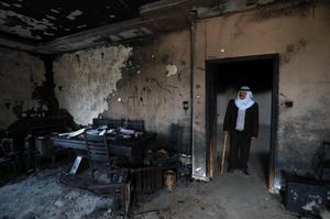 (260323) -- NAPLUSA, 23 marzo, 2026 (Xinhua) -- Un palestino inspecciona una casa incendiada por colonos israelíes, en la aldea de Deir al-Hatab, en el este de Naplusa, en Cisjordania, el 23 de marzo de 2026. (Xinhua/Ayman Nobani) (rtg) (ah) (ce)