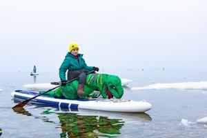 (260323) -- VLADIVOSTOK, 23 marzo, 2026 (Xinhua) -- Imagen del 22 de marzo de 2026 de un entusiasta del surf de remo remando en el mar durante las celebraciones para marcar el comienzo de la temporada de surf de remo, en Vladivostok, Rusia. (Xinhua/Andrey Matveenko) (rtg) (ah) (ce)