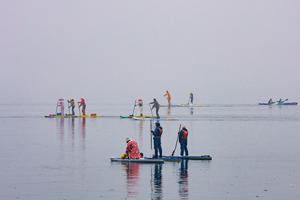 (260323) -- VLADIVOSTOK, 23 marzo, 2026 (Xinhua) -- Imagen del 22 de marzo de 2026 de entusiastas del surf de remo remando en el mar durante las celebraciones para marcar el comienzo de la temporada de surf de remo, en Vladivostok, Rusia. (Xinhua/Andrey Matveenko) (rtg) (ah) (ce)