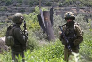 (260324) -- SALFIT, 24 marzo, 2026 (Xinhua) -- Soldados israelíes montan guardia cerca de los restos de un misil que cayó en el poblado de Haris, en el norte de Salfit, en Cisjordania, el 24 de marzo de 2026. (Xinhua/Nidal Eshtayeh) (oa) (ra) (vf)