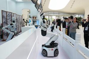 (260325) -- BEIJING, 25 marzo, 2026 (Xinhua) -- Invitados observan robots humanoides mientras trabajan en un bar comedor en el Centro Internacional de Innovación de Zhongguancun, en Beijing, capital de China, el 25 de marzo de 2026. El Foro Zhongguancun 2026 se lleva a cabo del 25 al 29 de marzo bajo el tema "Integración plena entre la innovación tecnológica y la innovación industrial". (Xinhua/Ju Huanzong) (ah) (ra) (ce)