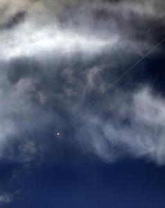 (260325) -- HEBRON, 25 marzo, 2026 (Xinhua) -- Una estela dejada por un proyectil en el cielo es vista desde la ciudad de Hebrón, en Cisjordania, en medio de tensiones regionales, el 25 de marzo de 2026. (Xinhua/Mamoun Wazwaz) (jg) (da) (ce)