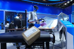 (260326) -- BEIJING, 26 marzo, 2026 (Xinhua) -- Imagen del 25 de marzo de 2026 de un robot mostrando su función de selección de paquetes en la exposición permanente en el Centro de Exposiciones Zhongguancun, en Beijing, capital de China. El Foro Zhongguancun 2026 (Foro ZGC), que se celebra en Beijing hasta el domingo, se centra en el tema "Integración plena entre la innovación tecnológica y la innovación industrial". (Xinhua/Ju Huanzong) (jg) (ah) (vf)