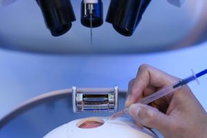 (260326) -- BEIJING, 26 marzo, 2026 (Xinhua) -- Imagen del 25 de marzo de 2026 de un empleado mostrando un cable de electrodo implantado por un robot de implantación de electrodos flexible de alto rendimiento en la exposición permanente en el Centro de Exposiciones Zhongguancun, en Beijing, capital de China. El Foro Zhongguancun 2026 (Foro ZGC), que se celebra en Beijing hasta el domingo, se centra en el tema "Integración plena entre la innovación tecnológica y la innovación industrial". (Xinhua/Ju Huanzong) (jg) (ah) (vf)
