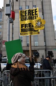 (260326) -- NUEVA YORK, 26 marzo, 2026 (Xinhua) -- Una simpatizante del presidente venezolano, Nicolás Maduro, protesta frente a un tribunal, en Nueva York, Estados Unidos, el 26 de marzo de 2026. Maduro compareció por segunda ocasión ante un tribunal de Nueva York la mañana del jueves luego de ser capturado por la fuerza por tropas estadounidenses en una incursión militar en Caracas a principios de enero. (Xinhua/Winston Zhou) (rtg) (ra) (ce)