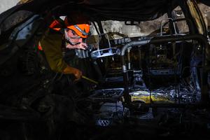 (260326) -- NAHARIYA, 26 marzo, 2026 (Xinhua) -- Un miembro de las fuerzas de seguridad y rescate israelíes trabaja en el sitio de un ataque con cohete lanzado desde Líbano, en Nahariya, en el norte de Israel, el 26 de marzo de 2026. Un hombre murió y otro resultó gravemente herido cuando un cohete lanzado desde Líbano impactó en la ciudad de Nahariya, en el norte de Israel, el jueves por la tarde, de acuerdo con el servicio de ambulancias Magen David Adom de Israel. (Xinhua/JINI) (jg) (ah) (vf)