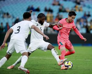 (260327) -- SIDNEY, 27 marzo, 2026 (Xinhua) -- Wei Shihao (d), de China, disputa el balón con Sherel Floranus (c), de Curazao, durante el partido amistoso internacional de la FIFA Series 2026 entre China y Curazao, en Sídney, Australia, el 27 de marzo de 2026. (Xinhua/Ma Ping) (rtg) (ra) (ce)