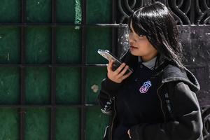 (260327) -- SANTIAGO, 27 marzo, 2026 (Xinhua) -- Imagen del 23 de marzo de 2026 de una estudiante hablando por su teléfono móvil mientras camina por una calle, en Santiago, capital de Chile. En Chile arrancó la regulación de dispositivos móviles en los colegios, en especial los celulares, una medida que busca recuperar la concentración y el vínculo humano en las aulas, lo que para expertos es una oportunidad para orientar su uso correcto en niños y adolescentes. (Xinhua/Jorge Villegas) (jv) (rtg) (ra) (vf)