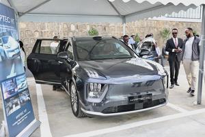 (260328) -- ADIS ABEBA, 28 marzo, 2026 (Xinhua) -- Imagen del 27 de marzo de 2026 de visitantes observando un automóvil GAC durante el evento de lanzamiento de la sala de exposición insignia de GAC JUNTU, en Adís Abeba, Etiopía. El fabricante de automóviles chino Guangzhou Automobile Group Co., Ltd. (GAC Group) presentó sus cuatro nuevos modelos de vehículos eléctricos en el mercado etíope, lo que supone una importante expansión en el país de Africa Oriental. (Xinhua/Geng Xinning) (jg) (rtg) (da)