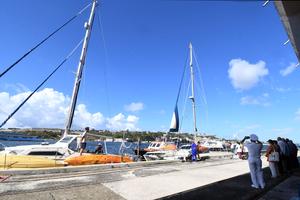 (260329) -- LA HABANA, 29 marzo, 2026 (Xinhua) -- Imagen del 28 de marzo de 2026 de personas observando dos veleros del Convoy Nuestra América, procedentes de México con ayuda humanitaria, atracados en un muelle del puerto habanero, en La Habana, capital de Cuba. Dos veleros del Convoy Nuestra América, procedentes de México, arribaron el sábado a la bahía de La Habana, luego de varios días sin comunicación con autoridades marítimas. (Xinhua/Joaquín Hernández) (jh) (rtg) (ah)
