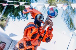 (260329) -- JALISCO, 29 marzo, 2026 (Xinhua) -- Imagen del 28 de marzo de 2026 de una persona disfrazada participando en la Caravana Mundialista, en Zapopan, estado de Jalisco, México. A menos de tres meses de la Copa Mundial 2026, la emoción futbolística hierve no solo en los estadios de México, sino también en calles, plazas y colonias, donde iniciativas como la Caravana Mundialista buscan acercar la experiencia a la población. (Xinhua/Miriam Jiménez) (fc) (oa) (ah)
