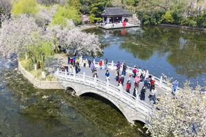 (260331) -- BEIJING, 31 marzo, 2026 (Xinhua) -- Vista aérea tomada con un dron el 29 de marzo de 2026 de turistas disfrutando de la primavera en un parque, en Nanjing, en la provincia de Jiangsu, en el este de China. (Xinhua/Shi Jun) (oa) (ah) (ce)