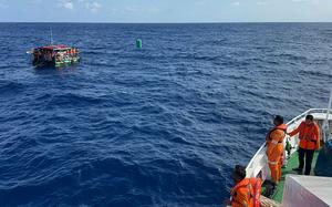 (260331) -- SULAWESI SEPTENTRIONAL, 31 marzo, 2026 (Xinhua) -- Rescatistas se acercan a los tripulantes sobrevivientes durante una operación de rescate en las aguas de Bolaang Mongondow del Sur, en Sulawesi Septentrional, Indonesia, el 31 de marzo de 2026. Los 21 miembros de la tripulación del barco a motor Nazila 05 fueron rescatados con vida por un equipo conjunto de búsqueda y rescate después de que el barco se hundiera en aguas al norte de la isla Taliabu en la provincia indonesia de Maluku del Norte, dijeron el martes las autoridades locales. (Xinhua/Basarnas Palu) (oa) (ah) (ce)