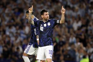 (260401) -- BUENOS AIRES, 1 abril, 2026 (Xinhua) -- Imagen del 31 de marzo de 2026 del jugador, Lionel Messi (frente), de Argentina, festejando su anotación durante el partido amistoso internacional previo a la Copa Mundial de la FIFA 2026 ante Zambia, celebrado en el Estadio Alberto J. Armando, en la ciudad de Buenos Aires, capital de Argentina. (Xinhua/Martín Zabala) (mz) (ah) (ra) (ce)
