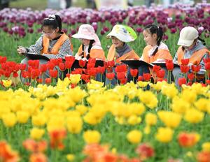 (260401) -- BEIJING, 1 abril, 2026 (Xinhua) -- Niñas pintan la naturaleza entre tulipanes, en Chaohu, en la provincia de Anhui, en el este de China, el 1 de abril de 2026. A medida que la primavera florece en China, los estudiantes de escuelas primarias y secundarias de varias regiones se preparan para sus primeras vacaciones de primavera, en las que saldrán del aula para viajar y participar en una amplia gama de actividades. (Xinhua/Ma Fengcheng) (ah) (ra) (ce)