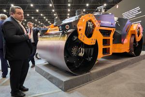 (260401) -- SAN PETERSBURGO, 1 abril, 2026 (Xinhua) -- Una aplanadora no tripulada es vista durante el primer Foro Internacional de Transporte y Logística, en San Petersburgo, Rusia, el 1 de abril de 2026. El primer Foro Internacional de Transporte y Logística inició aquí el miércoles y durará hasta el 3 de abril. (Xinhua/Guo Feizhou) (ah) (ra) (vf)
