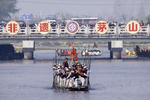 (260405) -- XINGHUA, 5 abril, 2026 (Xinhua) -- Imagen del 5 de abril de 2026 de botes navegando durante la feria de botes de Maoshan, en la ciudad de Xinghua, en la provincia de Jiangsu, en el este de China. La feria anual de botes de Maoshan en Xinghua se celebró el domingo. El evento fue inscrito como patrimonio cultural inmaterial nacional en 2014. (Xinhua/Tang Dehong) (oa) (da)