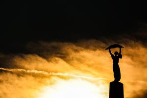 (260406) -- BUDAPEST, 6 abril, 2026 (Xinhua) -- Imagen del 5 de abril de 2026 de una vista de la recién renovada Estatua de la Libertad, en la colina Gellert, en Budapest, Hungría. La Ciudadela, uno de los paisajes más famosos de Budapest, reabrió oficialmente el domingo después de años de renovaciones. (Xinhua/David Balogh) (rtg) (ah) (vf)