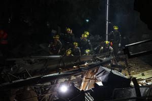 (260406) -- HAIFA, 6 abril, 2026 (Xinhua) -- Imagen del 5 de abril de 2026 de las fuerzas de seguridad israelíes y rescatistas vistos en el sitio de un ataque con misil iraní, en Haifa, en el norte de Israel. Cuatro personas están desaparecidas y cuatro más resultaron heridas después de que un misil iraní impactó un edificio residencial, en Haifa, una ciudad en el norte de Israel, dijo la policía el domingo. (Xinhua/JINI) (rtg) (ah) (ce)