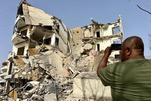 (260405) -- BEIRUT, 5 abril, 2026 (Xinhua) -- Imagen del 4 de abril de 2026 de un hombre tomando fotografías de edificios dañados después de los ataques aéreos israelíes, en Tiro, Líbano. Los ataques aéreos y ataques con drones israelíes en el sur de Líbano dejaron al menos 14 muertos y más de 25 heridos, según informó la Agencia Nacional de Noticias, mientras aviones de guerra israelíes llevaban a cabo intensos ataques aéreos en los suburbios del sur de Beirut el sábado al amanecer y durante la mañana. (Xinhua/Ali Hashisho) (rtg) (ah)