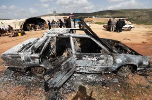 (260406) -- NAPLUSA, 6 abril, 2026 (Xinhua) -- Un automóvil dañado es visto después de un ataque de colonos israelíes, en la aldea Al-Lubban ash-Sharqiya, en el sur de Naplusa, en Cisjordania, el 6 de abril de 2026. (Xinhua/Ayman Nobani) (rtg) (ah) (vf)