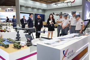 (260408) -- SANTIAGO, 8 abril, 2026 (Xinhua) -- Imagen del 7 de abril de 2026 de personas visitando el estand de China North Industries Corporation (NORINCO, por sus siglas en inglés) durante la Feria Internacional del Aire y del Espacio (FIDAE), en Santiago, Chile. La FIDAE de este año, programada del 7 al 12 de abril, ha atraído a 440 expositores de 35 países y regiones, incluida China. (Xinhua/Zhou Jiayi) (ah) (ra) (ce)