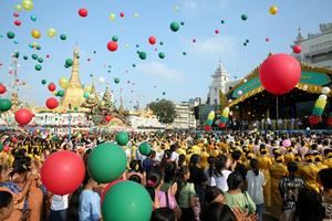 (260413) -- YANGON, 13 abril, 2026 (Xinhua) -- Personas participan en las celebraciones del festival del agua de Thingyan, en Yangón, Myanmar, el 13 de abril de 2026. El festival, que marca el inicio del Año Nuevo de Myanmar, suele celebrarse a mediados de abril y dura de cuatro a cinco días. Este año cae el 13 de abril. (Xinhua/Myo Kyaw Soe) (oa) (ah) (vf)