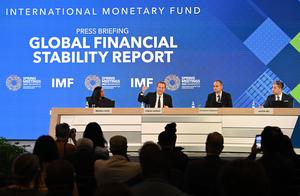 (260414) -- WASHINGTON, 14 abril, 2026 (Xinhua) -- Tobias Adrian (3-d), director del Departamento de Mercados Monetarios y de Capital del Fondo Monetario Internacional (FMI), habla en una conferencia de prensa sobre el Informe sobre la Estabilidad Financiera Mundial, en Washington D. C., Estados Unidos, el 14 de abril de 2026. El FMI publicó el martes su Informe sobre la Estabilidad Financiera Mundial, en el que advirtió que los riesgos para la estabilidad financiera global están aumentando en medio de la situación actual en Medio Oriente. (Xinhua/Li Rui) (jg) (ra) (vf)