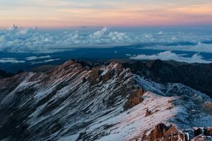 (260414) -- MERU, 14 abril, 2026 (Xinhua) -- Imagen del 12 de abril de 2026 de las nubes vistas desde la cima del Point Lenana en el Parque Nacional del Monte Kenia, en el distrito de Meru, en el centro de Kenia. Situado cerca del ecuador, en el centro de Kenia, el Monte Kenia es la segunda montaña más alta de Africa, ya que su pico más alto, el Batian, alcanza los 5.199 metros. La vegetación del Parque Nacional del Monte Kenia cambia con la altitud, creando distintas zonas ecológicas verticales. (Xinhua/Xie Jianfei) (oa) (ah) (vf)
