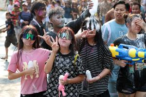(260415) -- PHNOM PENH, 15 abril, 2026 (Xinhua) -- Personas participan en un evento en el que lanzan agua en el segundo día de las celebraciones del Año Nuevo tradicional de Camboya en el sitio histórico de Wat Phnom, en Phnom Penh, Camboya, el 15 de abril de 2026. (Xinhua/Sovannara) (jg) (da) (ce)