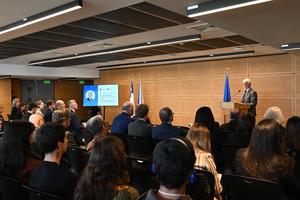 (260415) -- SANTIAGO, 15 abril, 2026 (Xinhua) -- El presidente de República Checa, Petr Pavel (d-atrás), participa en la conferencia "Cuando los conflictos convergen: La Perspectiva de Europa Central" dirigida a estudiantes del Instituto de Estudios Internacionales de la Facultad de Gobierno, en el Complejo Universitario VM-20 de la Universidad de Chile, en Santiago, capital de Chile, el 15 de abril de 2026. (Xinhua/Jorge Villegas) (jv) (ah) (ra) (ce)