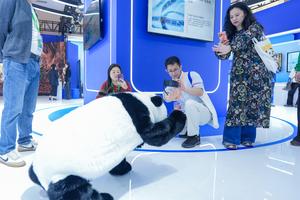 (260415) -- CHENGDU, 15 abril, 2026 (Xinhua) -- Participantes interactúan con un panda robótico simulado durante la 13 Convención de Audio y Video por Internet de China, en Chengdu, en la provincia de Sichuan, en el suroeste de China, el 15 de abril de 2026. La convención comenzó aquí el miércoles, contando con una serie de foros temáticos, eventos de presentación, proyecciones de películas y otras actividades. (Xinhua/Wang Xi) (jg) (vf)