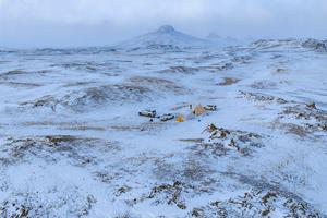 (260416) -- LHASA, 16 abril, 2026 (Xinhua) -- Vista aérea tomada con un dron del 11 de abril de 2026 de guardabosques acampando en la zona del grupo volcánico extinto de Bamoqongzong en la Reserva Natural Nacional de Changtang, en la región autónoma de Xizang, en el suroeste de China. El grupo volcánico extinto de Bamoqongzong se encuentra en lo profundo de la Reserva Natural Nacional de Changtang, a una altitud media de aproximadamente 5.000 metros. (Xinhua/Jiang Fan) (da) (vf)